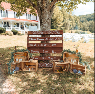 DescriptionIntroducing our charming "Choose a Seat, Not a Side" Pallet Sign, perfect for adding a touch of warmth and unity to your special event. Its heartfelt message encourages guests to mingle and celebrate together, making it an ideal addition to weddings, family reunions, or any gathering where you want to foster a sense of community. Measuring at a versatile size, this sign is easy to display at entrances or ceremony spaces, creating an inviting atmosphere as guests arrive. Its sturdy construction ensures stability, while the elegant lettering adds a touch of sophistication. Renting this pallet sign is a simple way to enhance your event's ambiance without the commitment of a permanent purchase. Let this beautiful sign guide your guests to their seats with grace and style, ensuring everyone feels welcome and included. Reserve it today to make your event even more memorable.